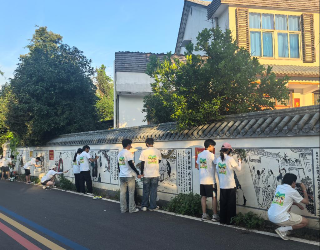 本网讯 近日,湘阴县金龙镇燎源村迎来了一群特殊的“艺术家”——我校“艺馨圆梦 创绘乡情”实践团的师生们来到这里,他们以画笔为媒,为村里的院墙披上了绚丽的“新装”。